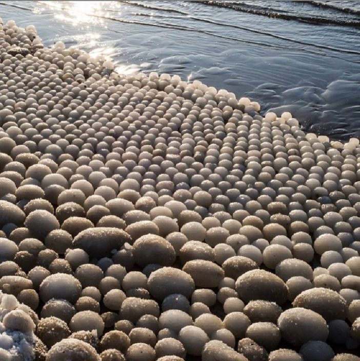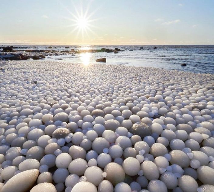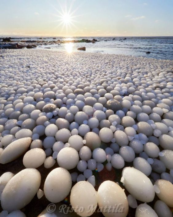 芬蘭一名業餘攝影師馬蒂拉(Risto Mattila)日前在海盧奧托島(Hailuoto)海邊散步時,發現海灘上竟出現一大片從未見過的「冰蛋海」,在海灘蔓延足足有30米,他和妻子看到此景呆站在原地良久,驚嘆大自然的神奇力量,其他路過的島民也紛紛佇足欣賞。